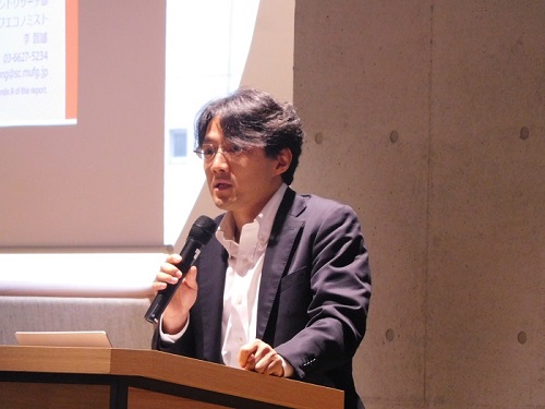 강사에게, 미쓰비시 UFJ 모건·스탠리 증권(주)인벤스트먼트 리서치부 치프 이코노미스트 이 토모오씨를 맞이해, 「미나카 신냉전 시대에 있어서의 중국 경제 -국제화가 진행되는 위안화의 현상과 전망-」이라고 주제로.